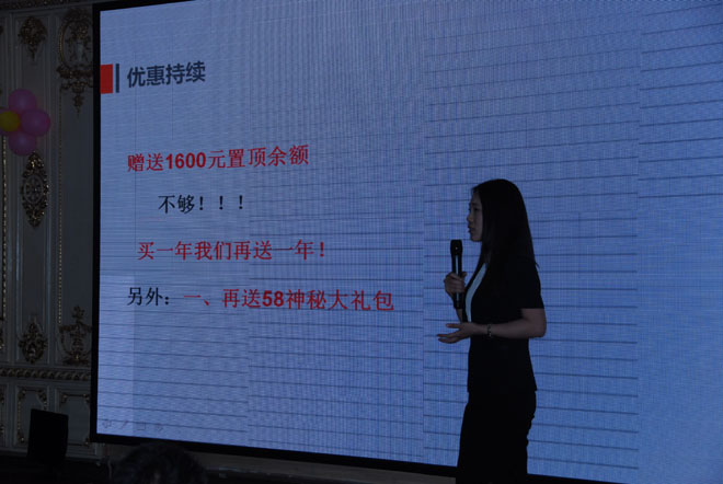 商業(yè)會議離不開會銷,這個大家都懂的,不過今天的價格真的很優(yōu)惠啊,看中原傳媒的美女講師在分享58同城產(chǎn)品