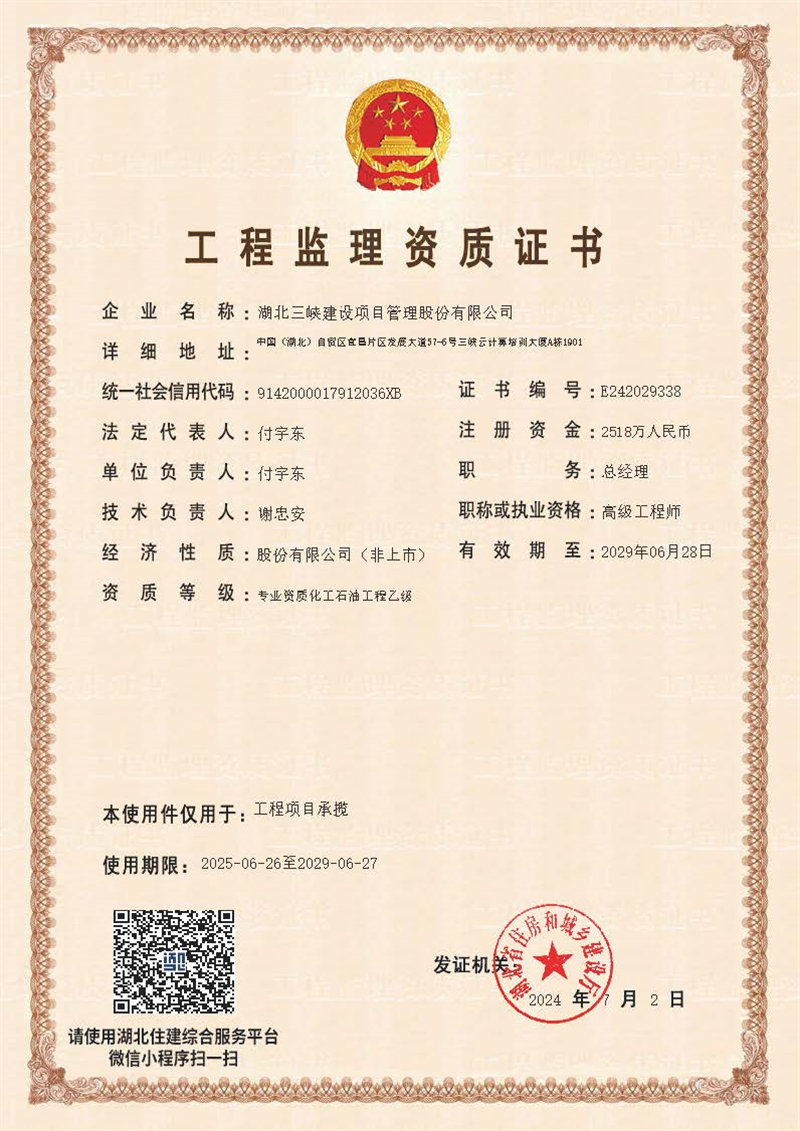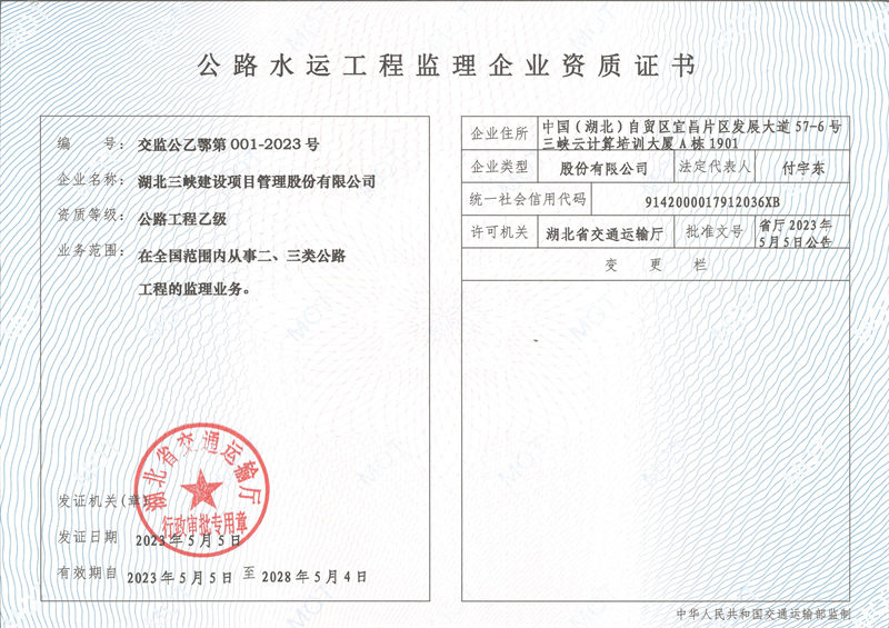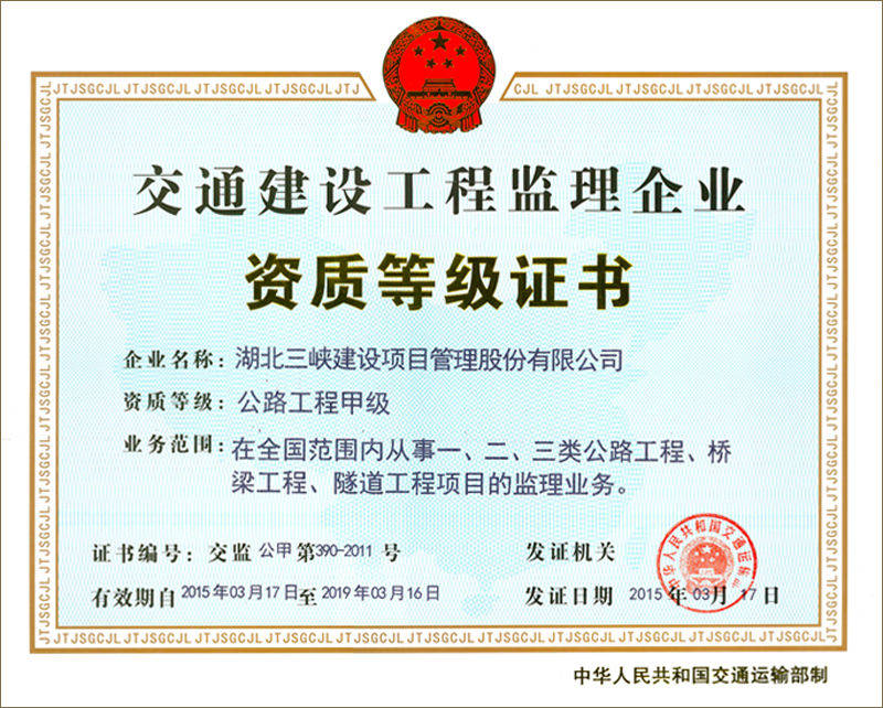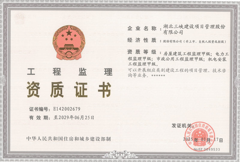 湖北三峽建設(shè)項(xiàng)目管理股份有限公司立足湖北宜昌,業(yè)務(wù)范圍遍及新疆、云南、福建、廣東等省市,為投資人提供了誠信、科學(xué)、公正的項(xiàng)目管理咨詢服務(wù)。公司注重以人為本,匯聚了專業(yè)、敬業(yè)、廉潔的人才隊伍,擁有全國注冊監(jiān)理工程師120余人、一級造價師20余人、一級建造師30余人、咨詢工程師(投資)10余人;公司致力以標(biāo)準(zhǔn)為證,公司研發(fā)的信息管理系統(tǒng)獲國家版權(quán)局計算機(jī)軟件著作權(quán)證;公司追求以價值為魂,鑄就了全過程控制、全要素服務(wù)的工作作風(fēng),所承擔(dān)的項(xiàng)目獲國家級建基,形成了履責(zé)行為規(guī)范和風(fēng)險管理機(jī)制,質(zhì)量管理、環(huán)境管理、職業(yè)健康安全管理獲ISO9001、ISO14001、 ISO 45001管理體系認(rèn)設(shè)工程質(zhì)量安全獎7項(xiàng)、省級建設(shè)工程質(zhì)量安全獎100余項(xiàng),市級建設(shè)工程質(zhì)量安全獎300余項(xiàng),合同履約率100%,項(xiàng)目優(yōu)良率42%。